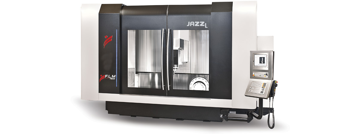 JAZZ L 5 AX replicates the combined concept of the JAZZ with a growth in versatility that provides benefits for the end user. The machine guarding based upon a new style of beveled top and rounded corners, gives a more quality finish to the machine. JAZZ L 5 AX is equipped with a fixed table and a swivel rotary table. The innovative design of JAZZ L includes the two sliding front doors that give easy access to the wide working area: this also allows the possibility of two machining areas thanks to the inclusion of options like a central wall along with an additional tool magazine. The latter is housed (arranged in advance) on the opposite side to the one where the standard magazine was located.